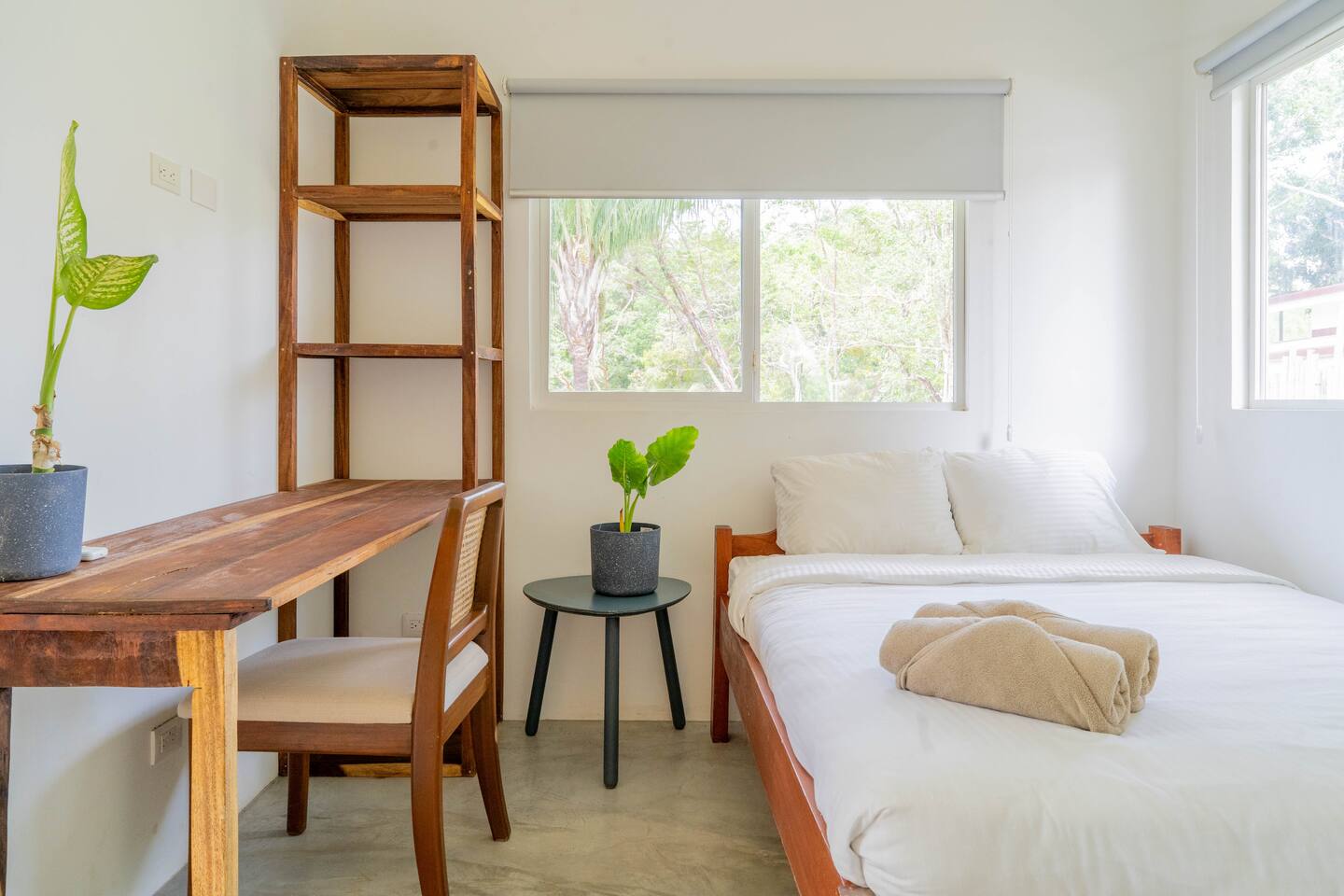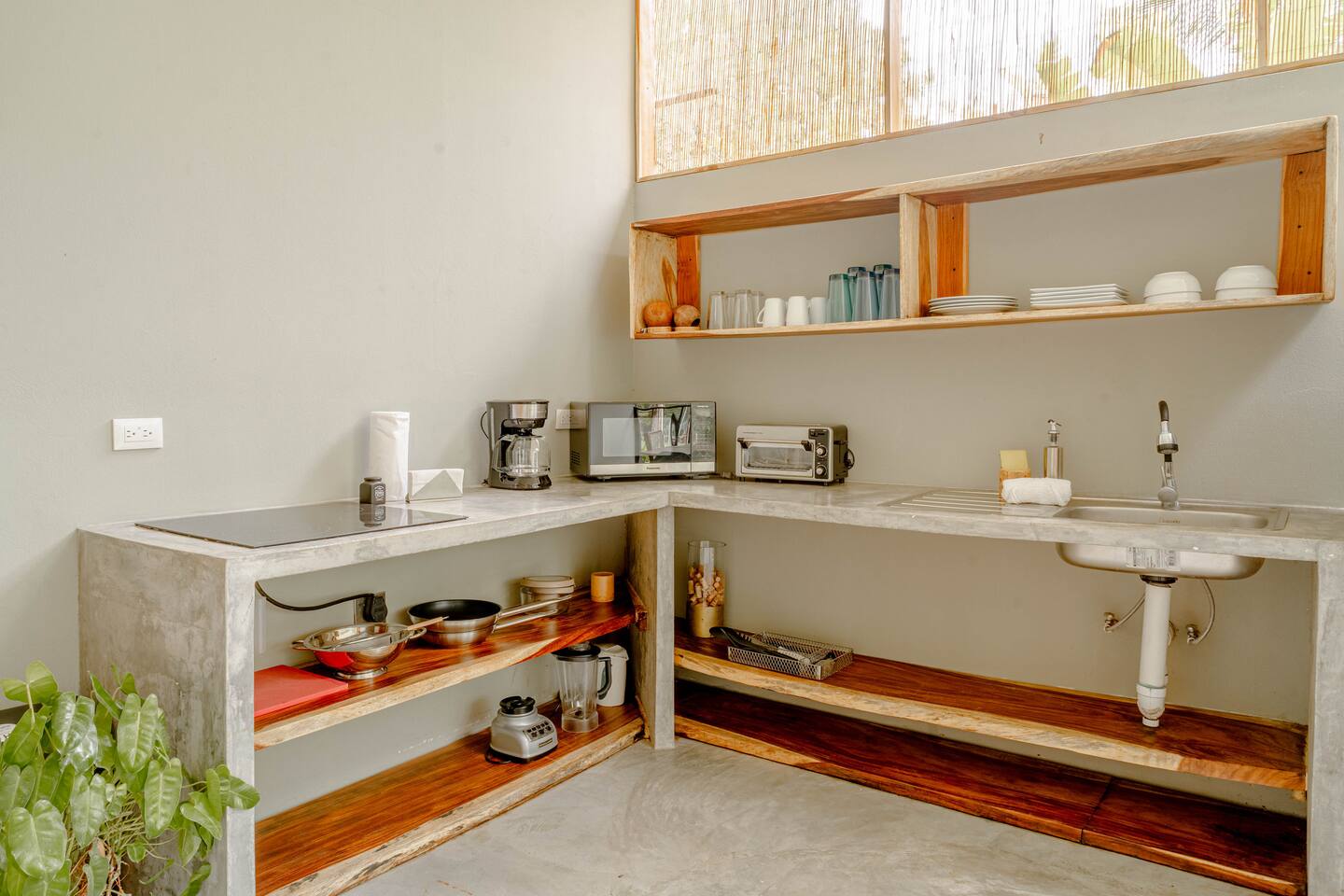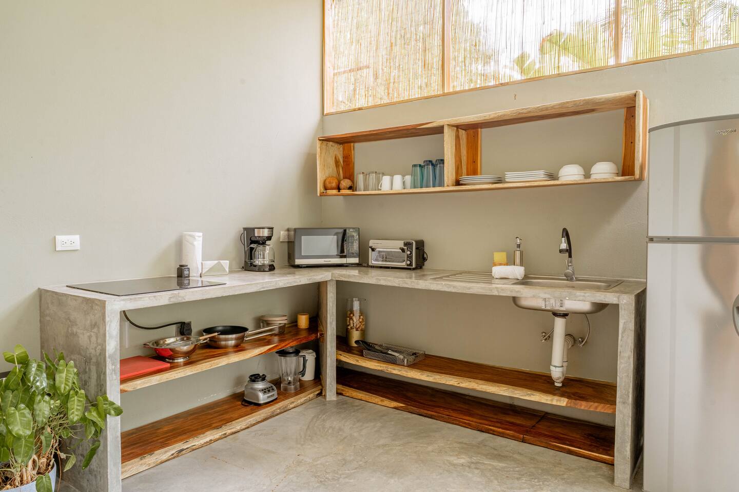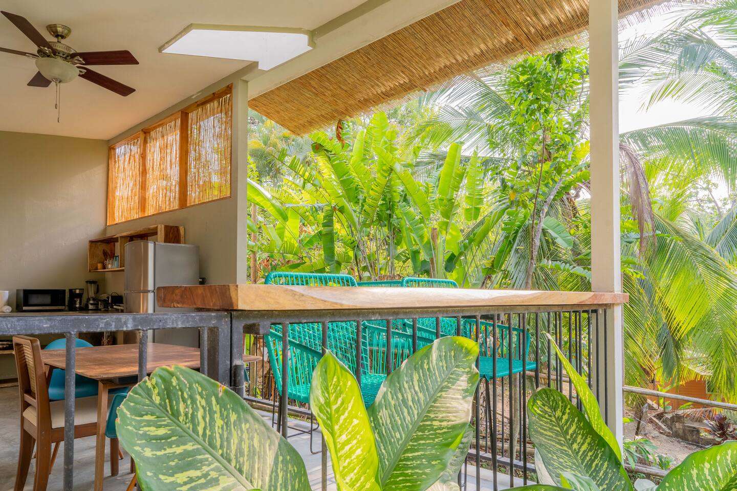 Wake up to coffee on your terrace overlooking lush greenery from an open-concept kitchen. This intimate casita, ideal for a couple and one child, is nestled in nature just a 10‑minute stroll to Playa Manzanillo. Spend your day exploring the spectacular tide pools or catching an evening surf lesson. Let our concierge book you a table at one of Santa Teresa’s best restaurants and arrange adventures for the rest of your stay.
