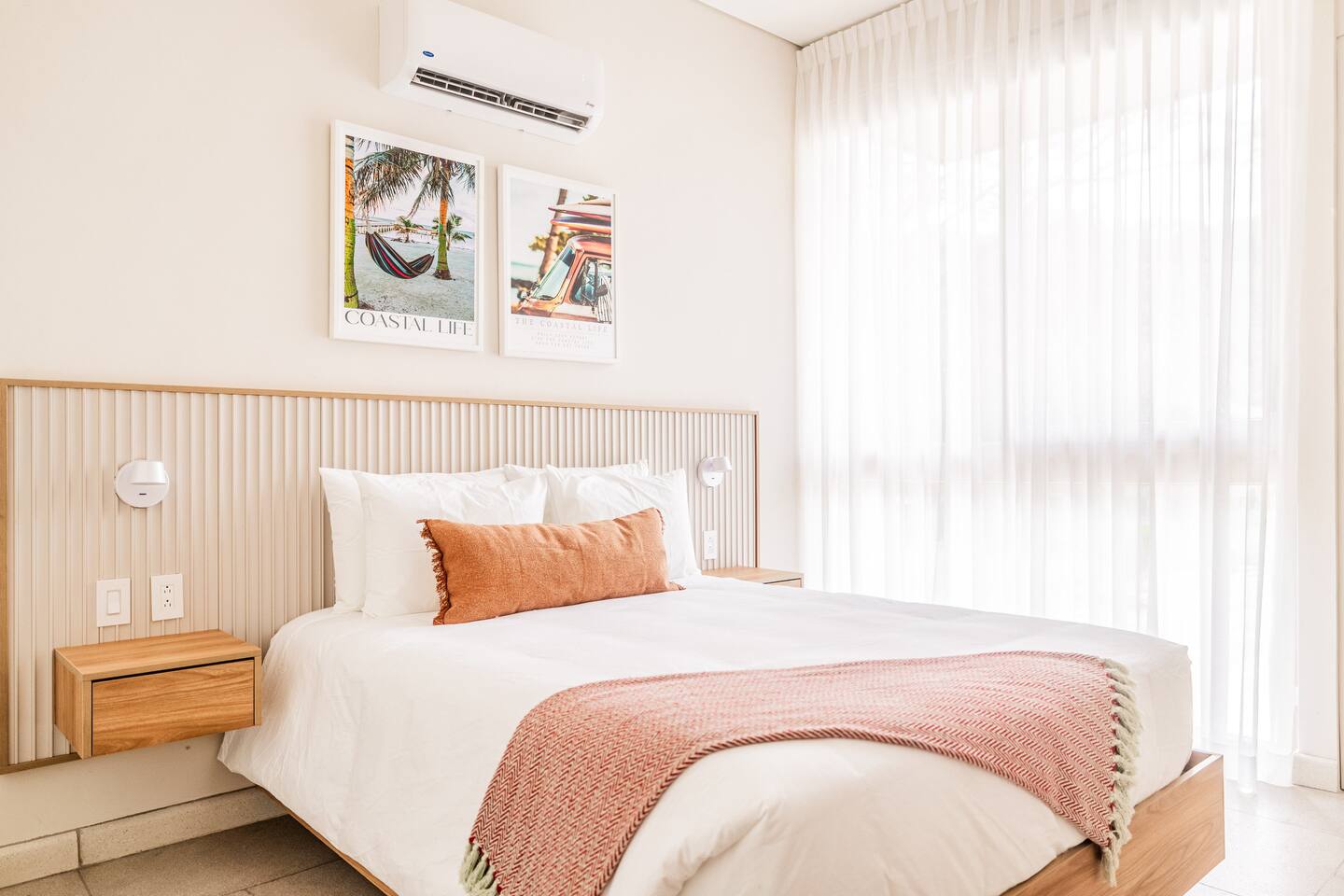 Enjoy full access to Praia’s upscale community amenities, plus a few special perks: - Large modern pool - White-sand volleyball court - AC-equipped gym - Two-story clubhouse with boho-style rooftop lounge - Complimentary golf cart included with your stay for easy trips to the beach and town