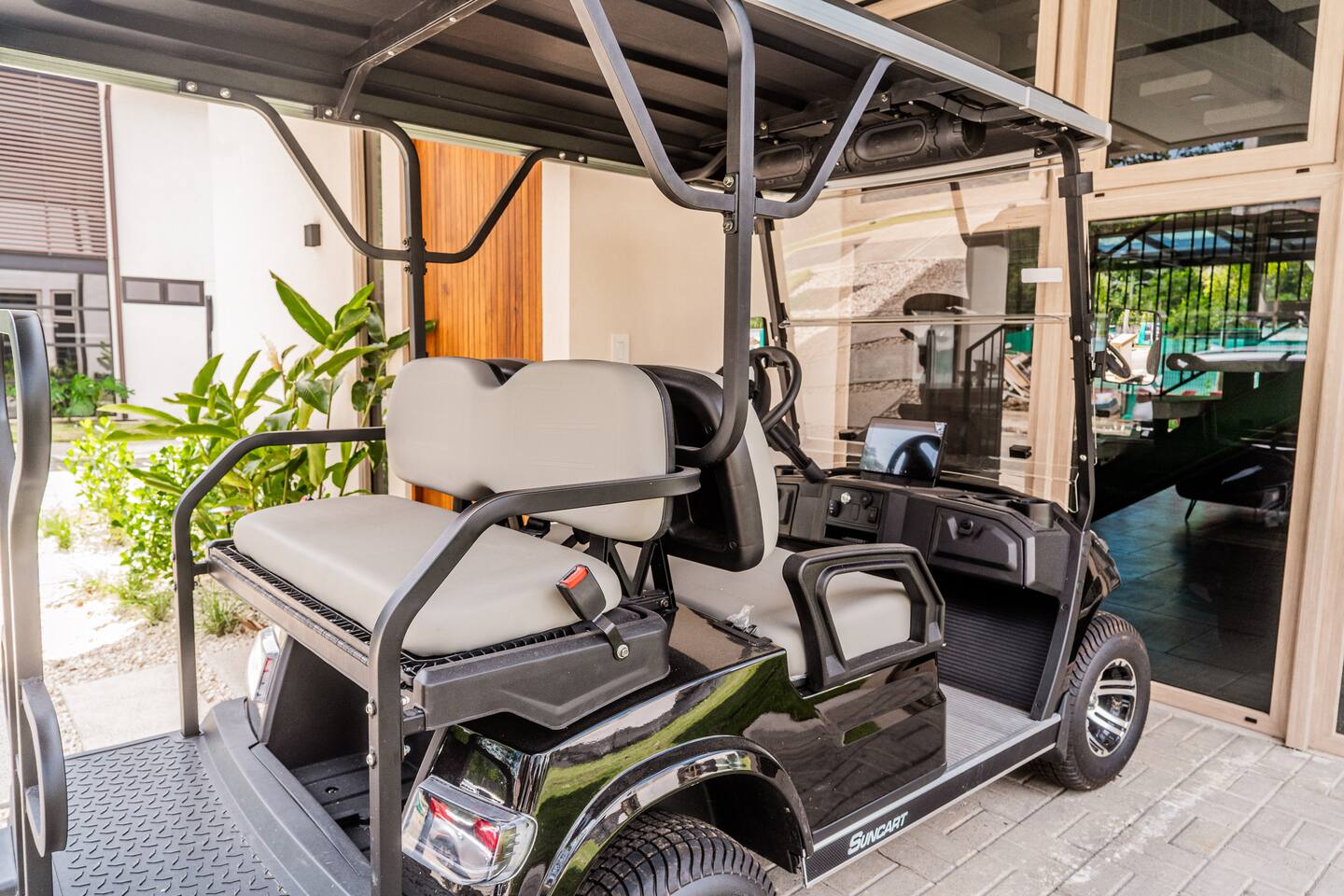 A car is recommended to get the most out of your stay, as the property is tucked away in a quiet, gated community near the edge of town. The center of Jacó and the beach are just a short drive away. Private parking is included, and Uber is also available in the area for added convenience. You will also have a complimentary golf cart included with your stay, which makes quick trips to the beach, restaurants, and town center easy and fun.
