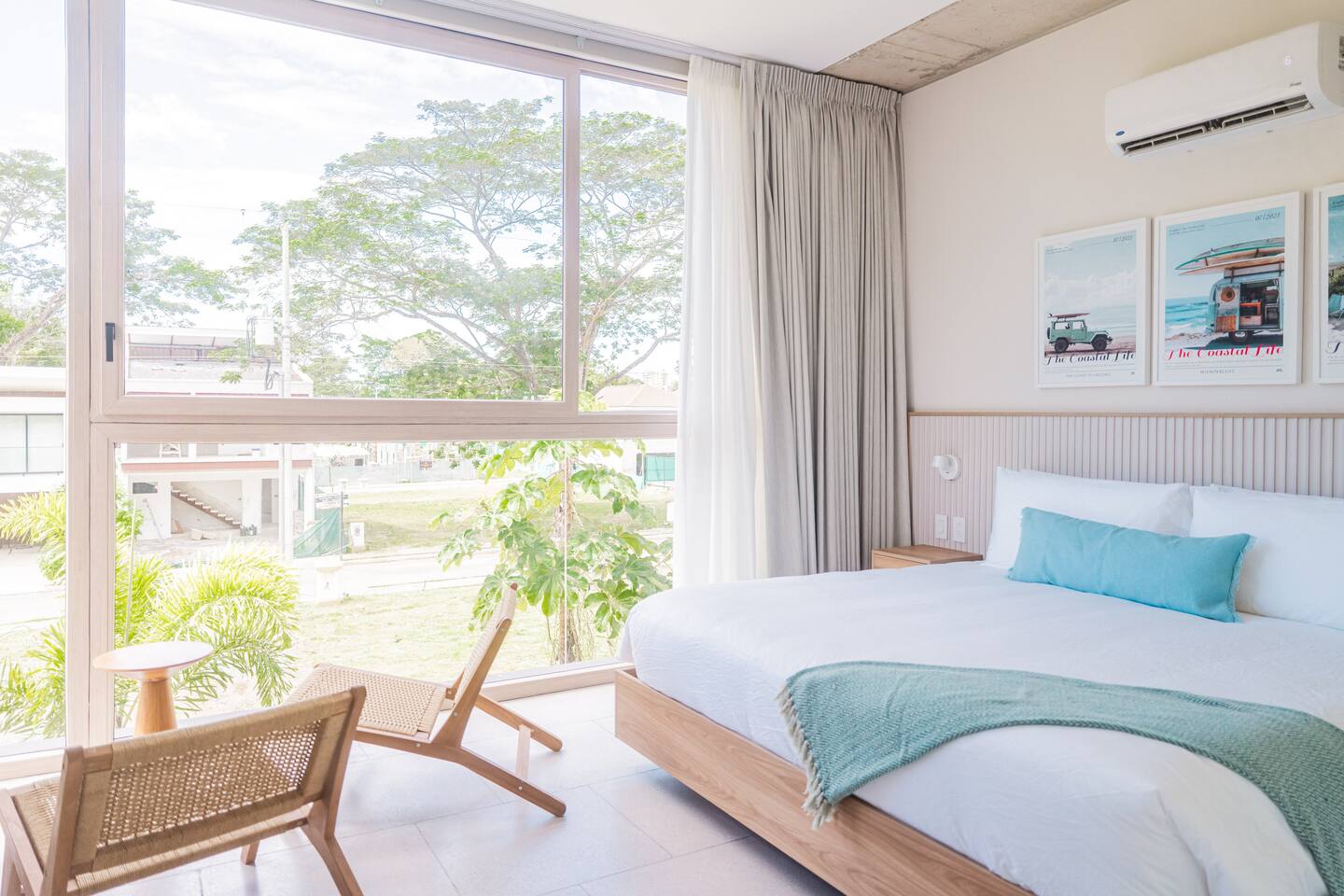 Wake up in a calm coastal retreat where light floods through floor to ceiling windows and natural textures set a relaxed tone. Step from the master suite into your private plunge pool, or sip your coffee while taking in the tropical surroundings. Spend the afternoon exploring Jacó with your golf cart or enjoying the white sand volleyball court, AC gym, and rooftop lounge. End the day with dinner prepared by a private chef, just one of many premium experiences our concierge can arrange for you.