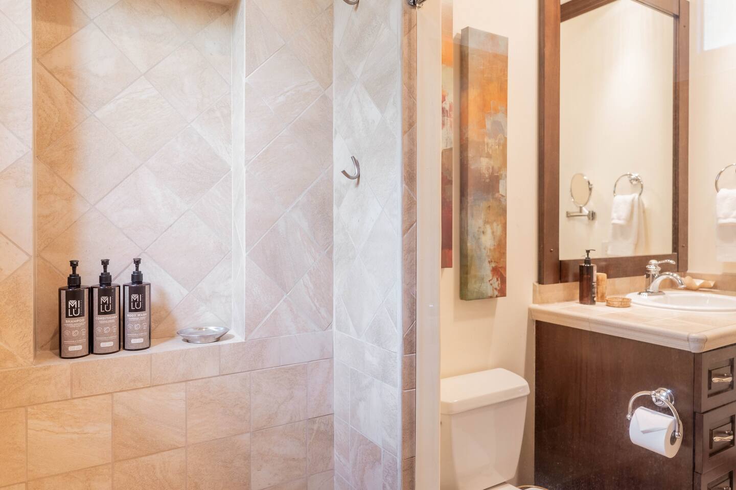 The apartment includes a dedicated parking spot, and additional guest parking is readily available. Los Sueños is very walkable, but for greater convenience, we recommend renting a golf cart or car. We're happy to assist with golf cart rentals, ensuring it's ready on arrival.