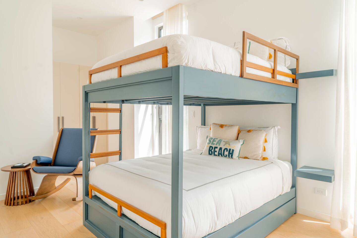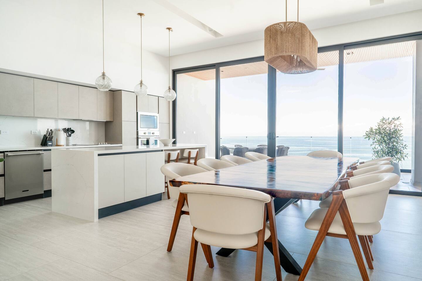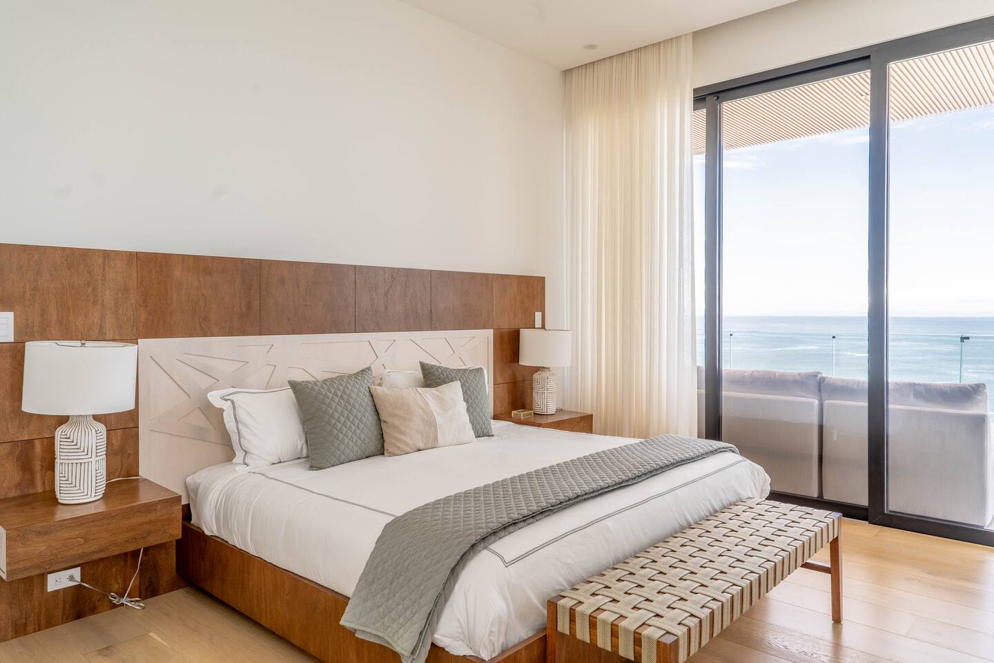 This 3-bedroom, 3-bathroom apartment is designed for comfort and style, with floor-to-ceiling glass windows that frame the incredible ocean views and fill the space with natural light. - Master Bedroom: King bed, private terrace, and sweeping ocean views - Second Bedroom: Two queen beds with ocean views - Third Bedroom: Queen bunk bed, ideal for kids - Open-concept living area with designer furnishings and a fully equipped contemporary kitchen