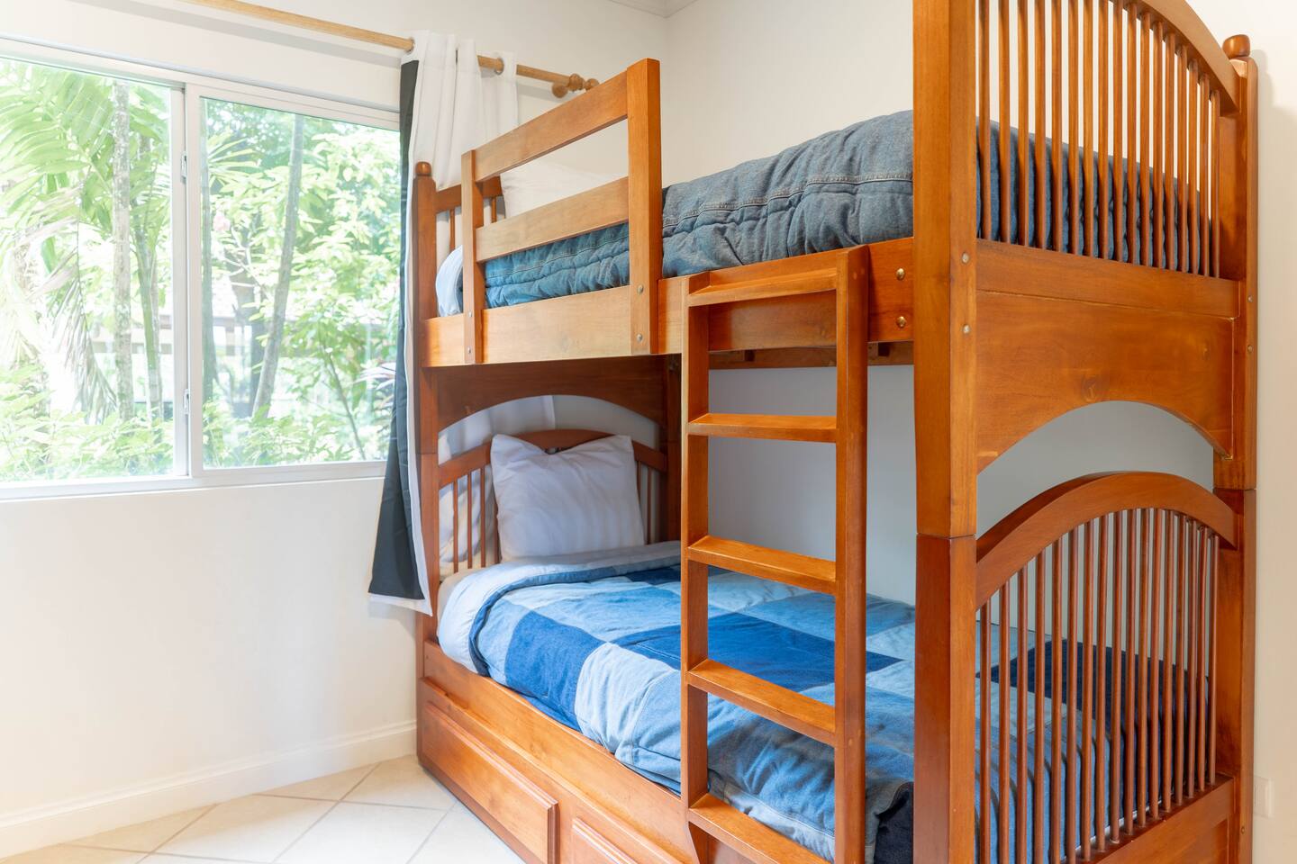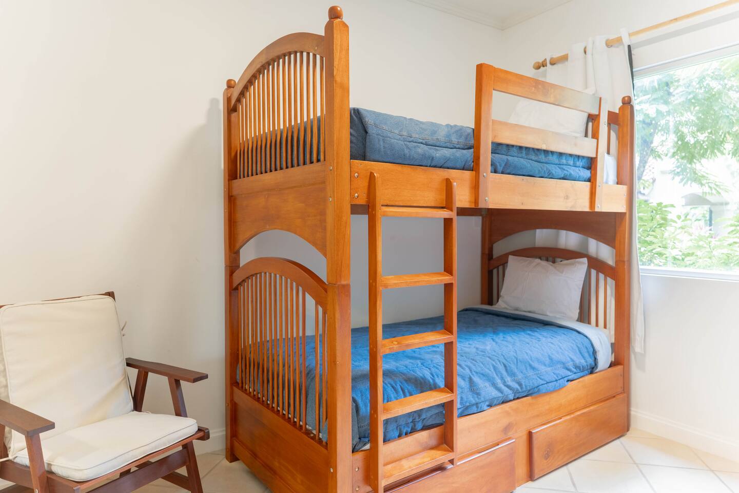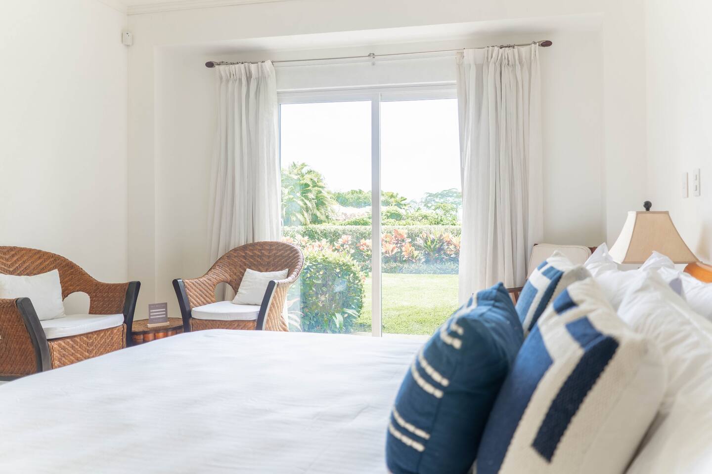 This spacious, kid-friendly condo is designed for families, featuring a private garden that opens directly to the outdoors. The layout offers plenty of room for everyone to relax, with two bunk beds in the third bedroom that are perfect for kids. - Master bedroom: King-sized bed with en-suite bathroom - Second bedroom: King-sized bed - Third bedroom: Two bunk beds, perfect for kids - Open-concept living area leading to the garden and terrace - Fully stocked kitchen - Private terrace and garden with direct access to Del Mar’s pools - Ground-level apartment