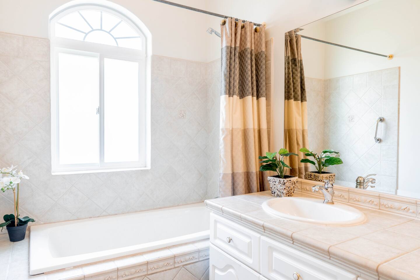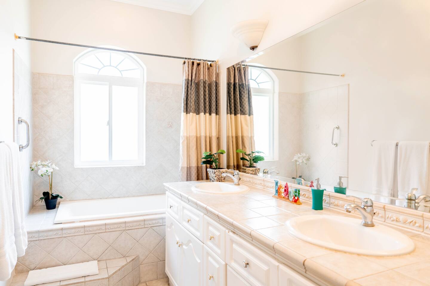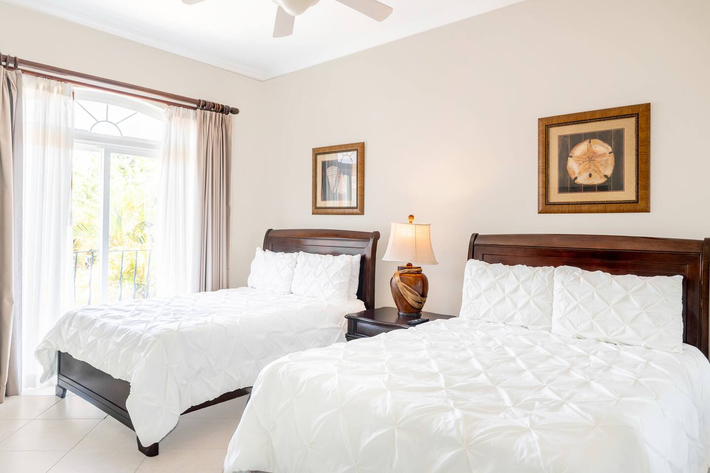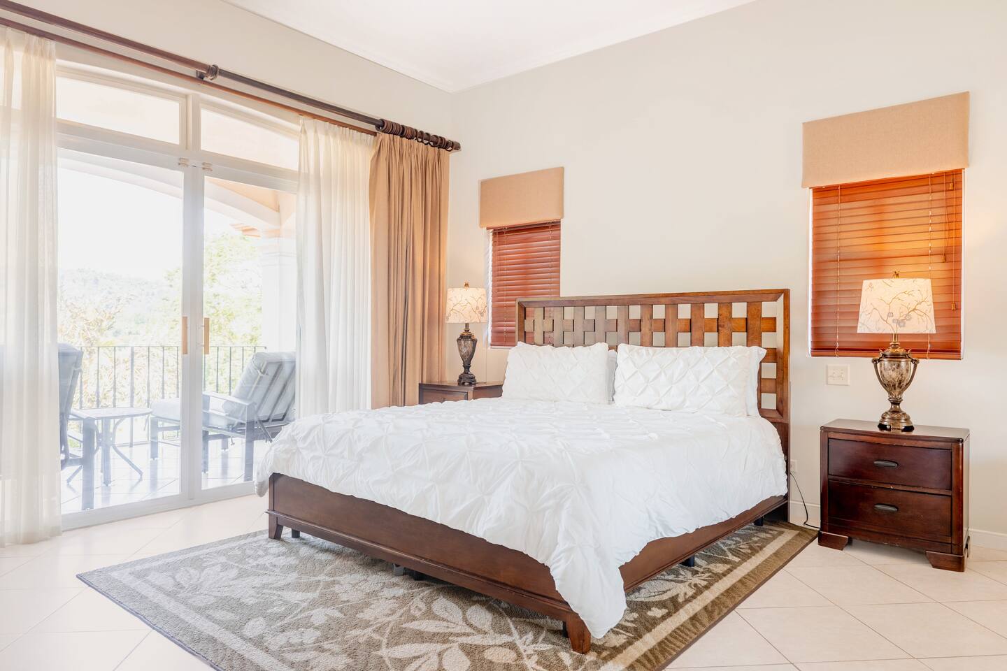 Our spacious 3 bedroom 2 bathroom condo is the premium format for Colina, Los Sueños, apartments. It boasts a larger living room and high ceilings. - Master bedroom: King-sized bed, en-suite bathroom and private terrace - Second bedroom: Queen-sized bed - Third bedroom: Two full beds - Open living room with abundant natural light and views of the treetops - Fully equipped kitchen - Balcony offering a peaceful, lush view nestled in the tree-tops