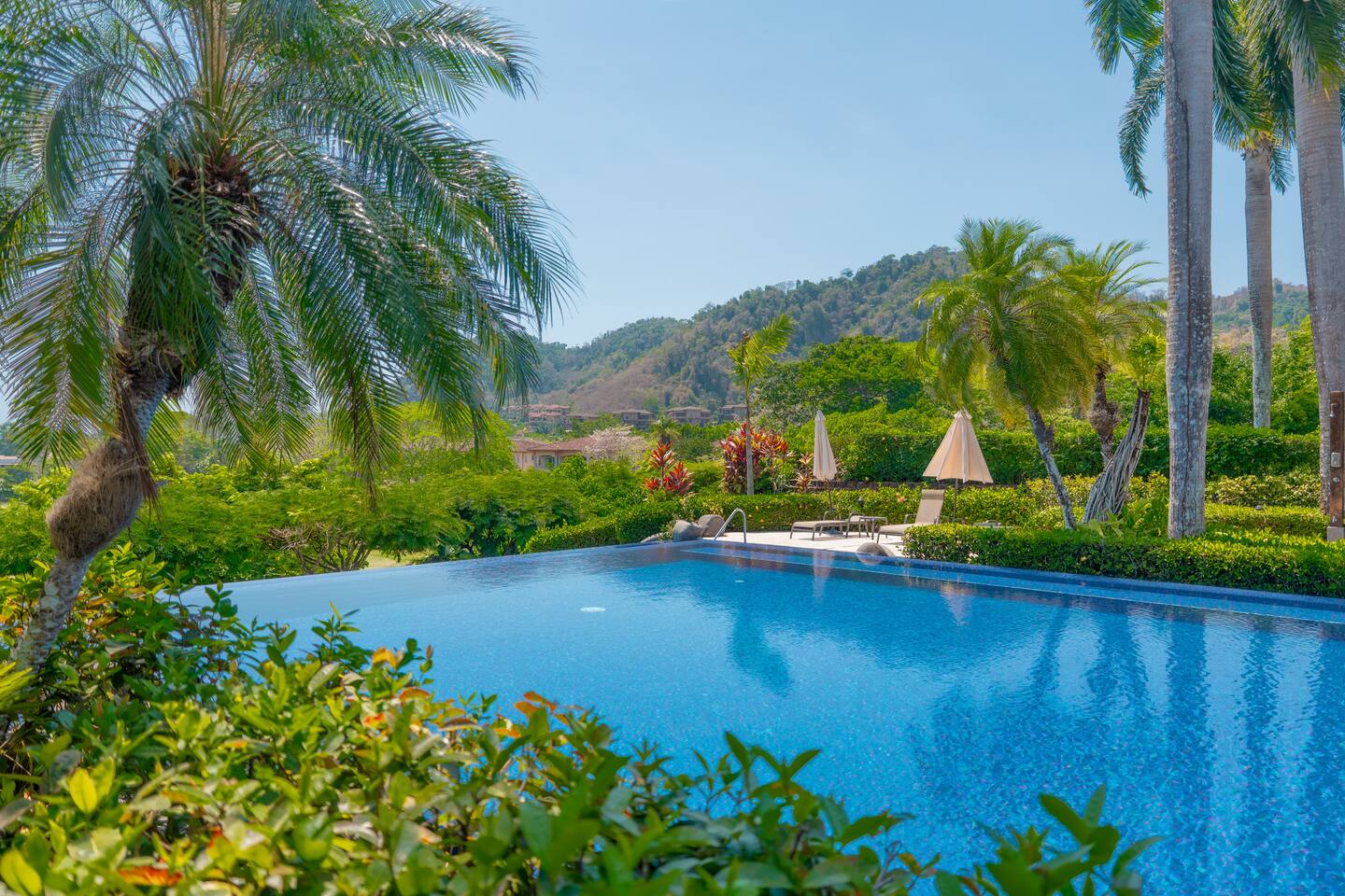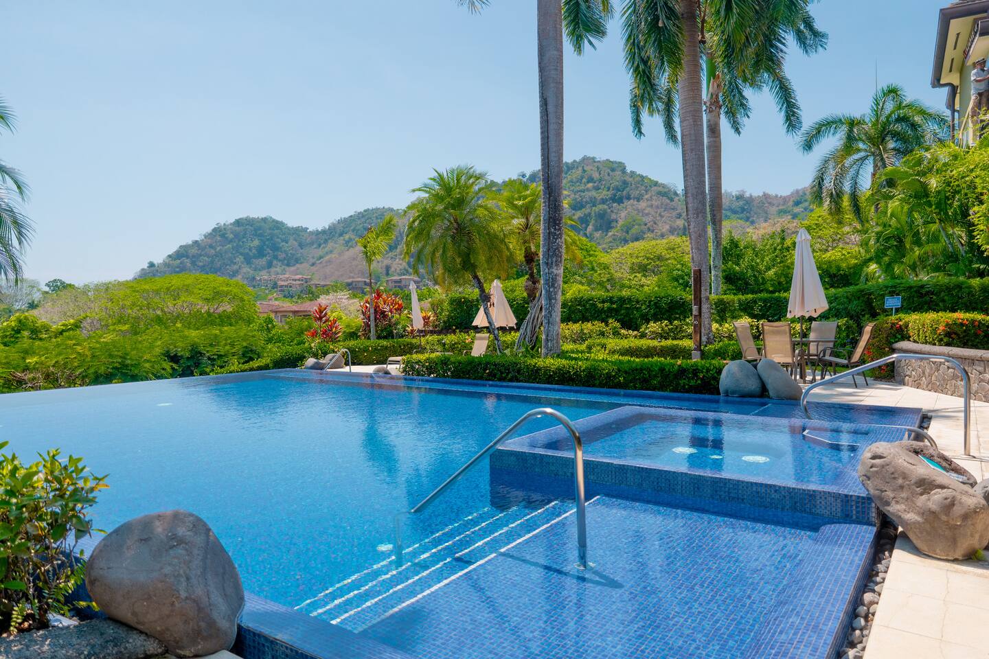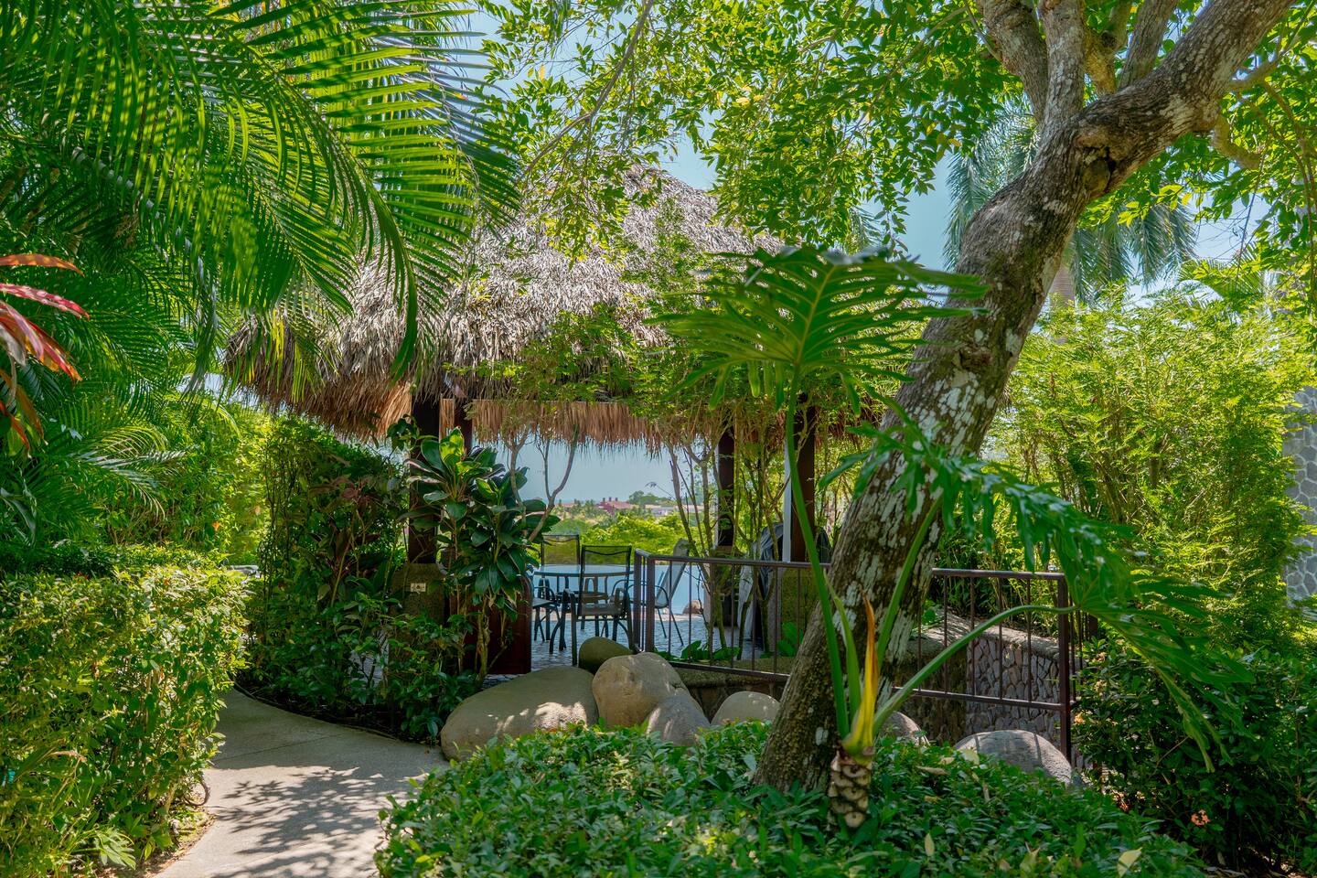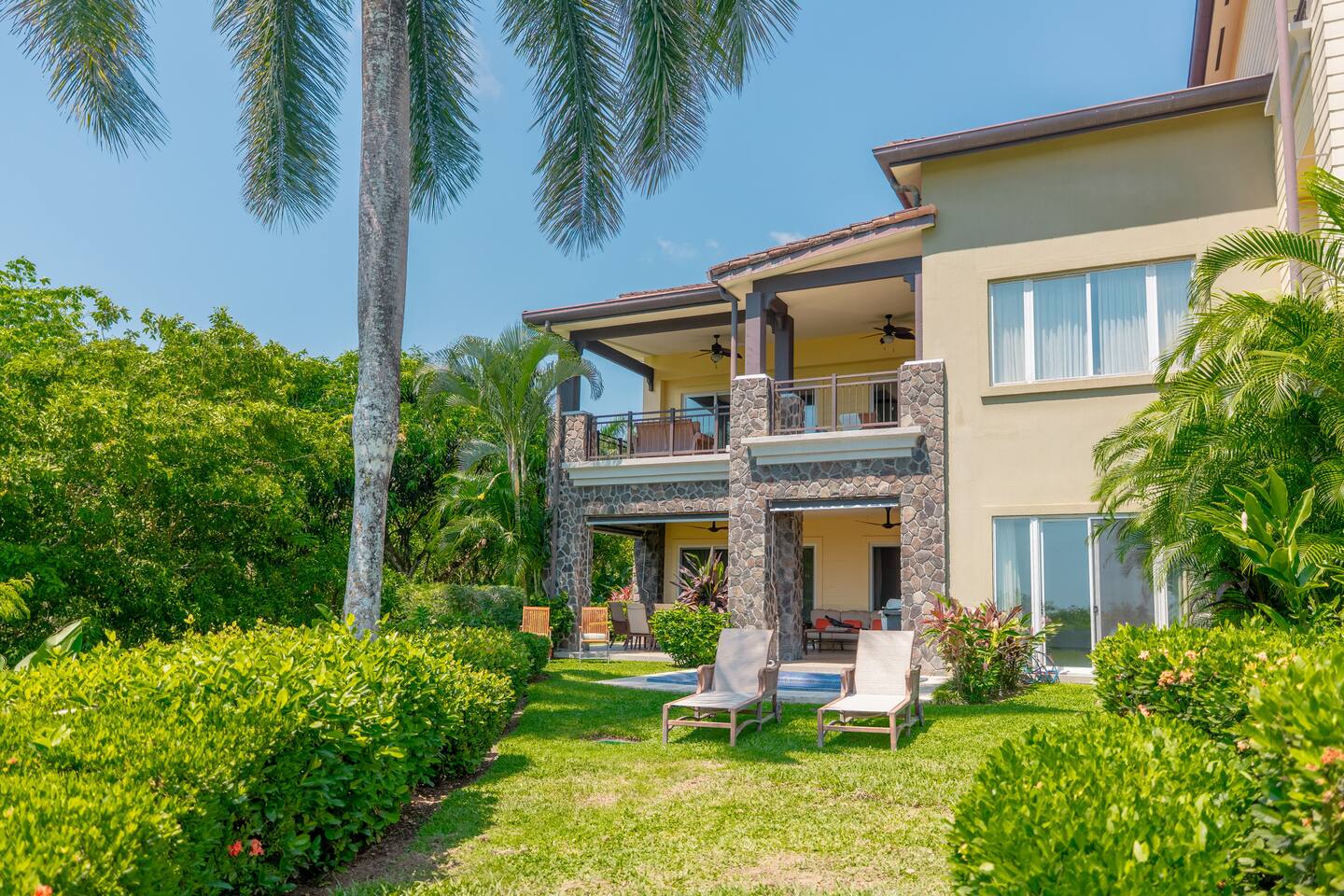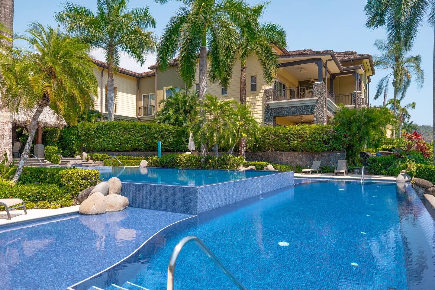 This spacious and bright condo is designed for comfort, privacy, and group living, accommodating up to 12 guests: - Bedroom 1: 2 King beds + full en-suite bathroom - Bedroom 2: 2 Queen beds + full en-suite bathroom - Bedroom 3: 2 Full beds + full bathroom - Maximum capacity: 12 guests - Bathrooms: 3 full bathrooms Key Features: - Spacious, bright, and ideal for families or groups - Private garden with private pool - Access to a shared pool as well - Ocean view and forest view Common Areas: - Comfortable living room with TV - Fully equipped kitchen - Indoor dining area - Outdoor terrace and garden space for relaxing