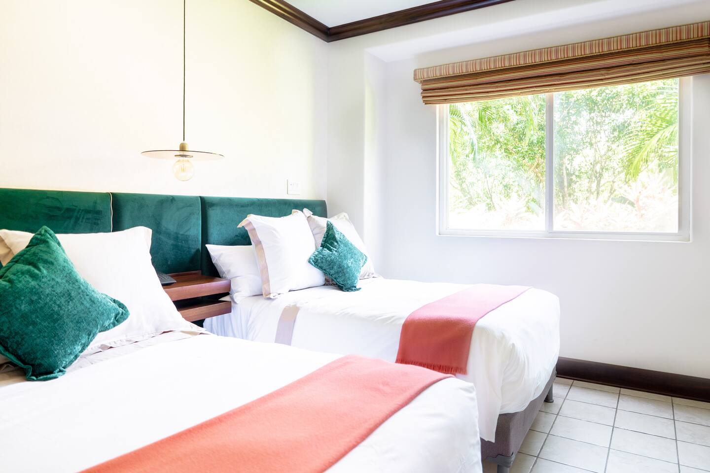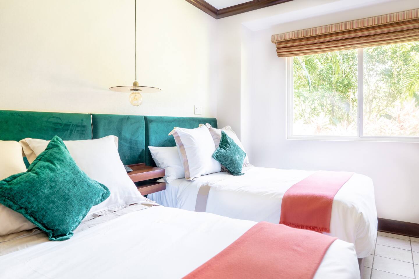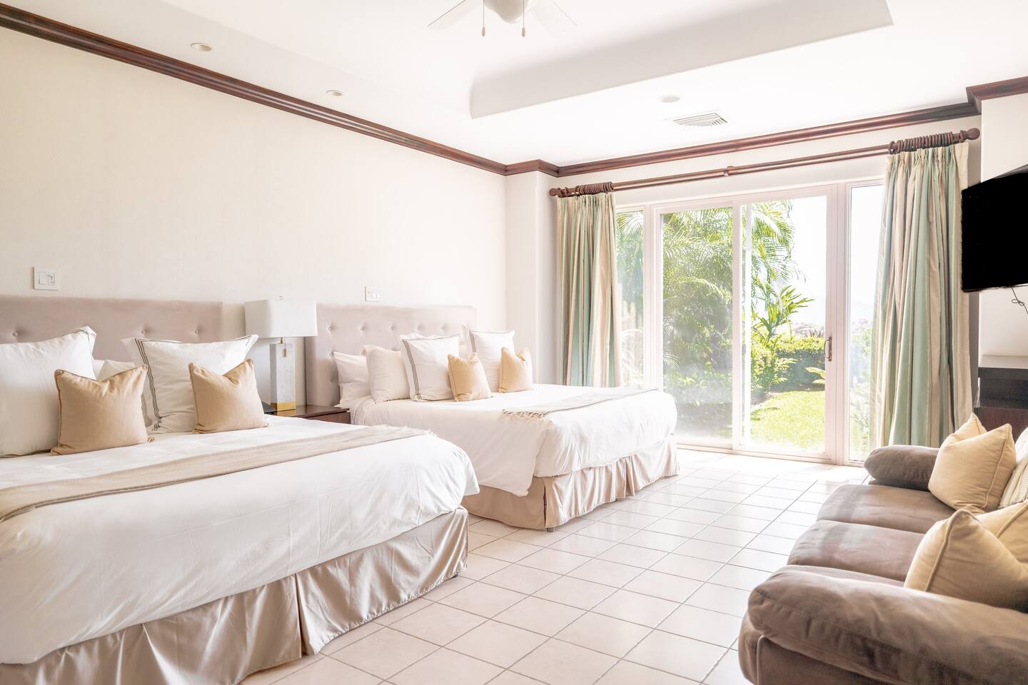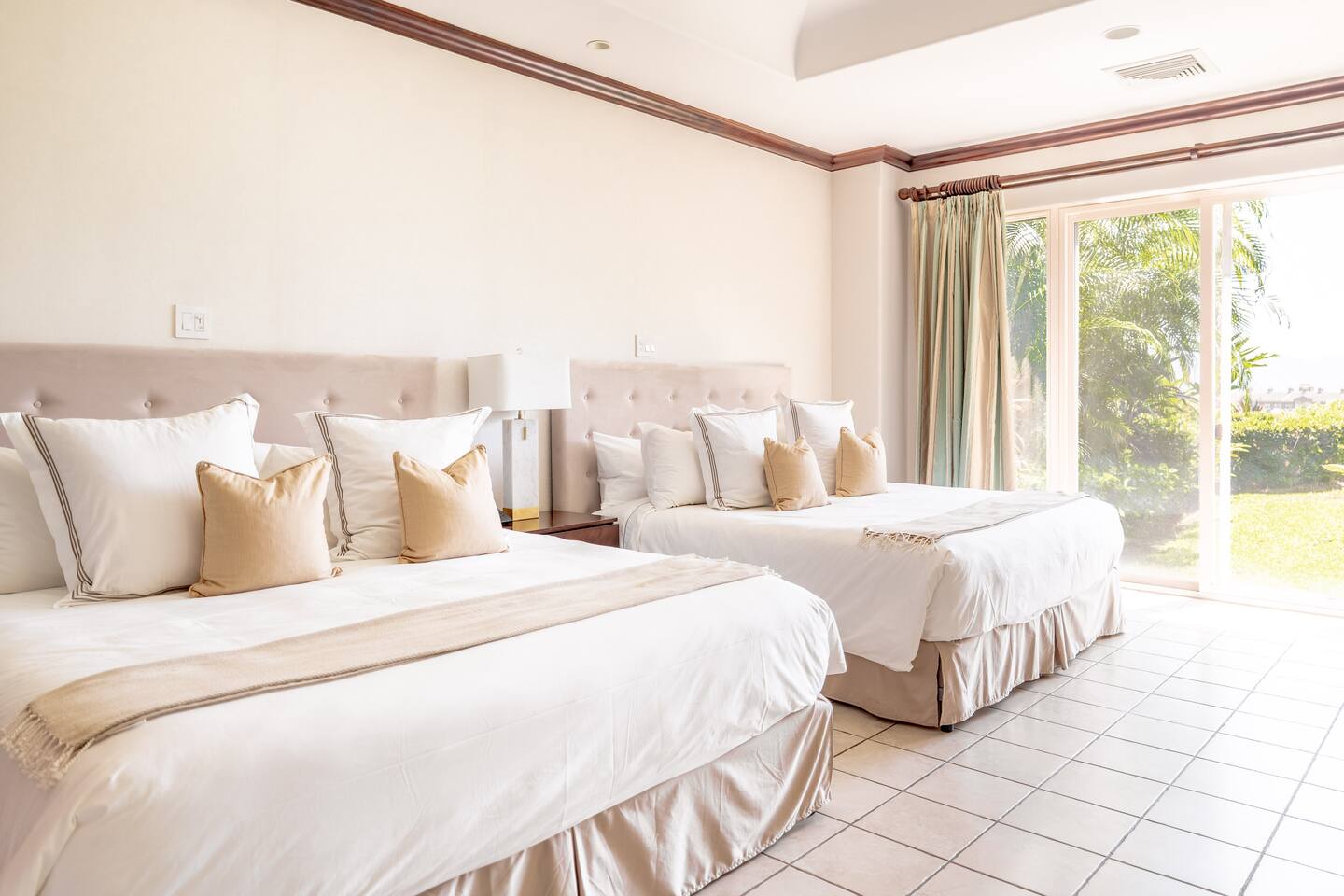 This spacious and bright condo is designed for comfort, privacy, and group living, accommodating up to 12 guests: - Bedroom 1: 2 King beds + full en-suite bathroom - Bedroom 2: 2 Queen beds + full en-suite bathroom - Bedroom 3: 2 Full beds + full bathroom - Maximum capacity: 12 guests - Bathrooms: 3 full bathrooms Key Features: - Spacious, bright, and ideal for families or groups - Private garden with private pool - Access to a shared pool as well - Ocean view and forest view Common Areas: - Comfortable living room with TV - Fully equipped kitchen - Indoor dining area - Outdoor terrace and garden space for relaxing