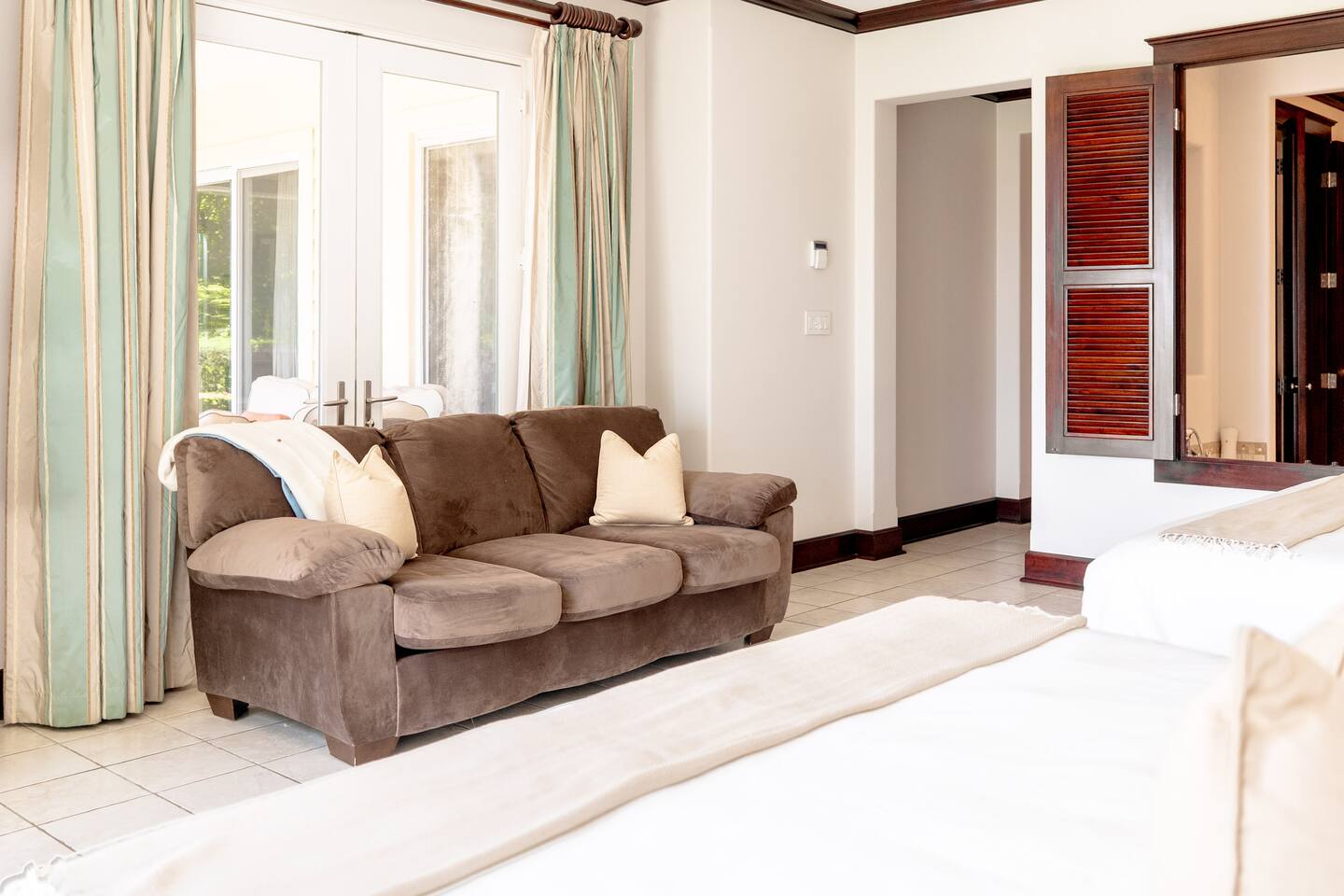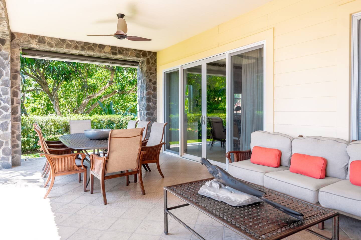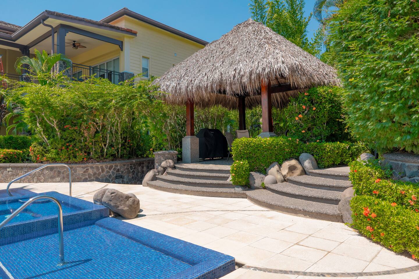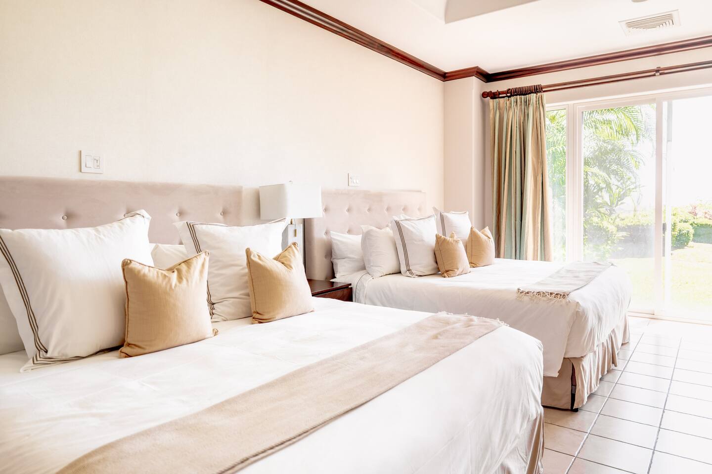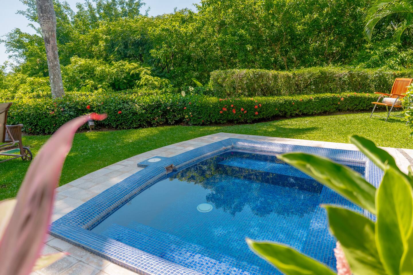 This spacious and bright condo is designed for comfort, privacy, and group living, accommodating up to 12 guests: - Bedroom 1: 2 King beds + full en-suite bathroom - Bedroom 2: 2 Queen beds + full en-suite bathroom - Bedroom 3: 2 Full beds + full bathroom - Maximum capacity: 12 guests - Bathrooms: 3 full bathrooms Key Features: - Spacious, bright, and ideal for families or groups - Private garden with private pool - Access to a shared pool as well - Ocean view and forest view Common Areas: - Comfortable living room with TV - Fully equipped kitchen - Indoor dining area - Outdoor terrace and garden space for relaxing