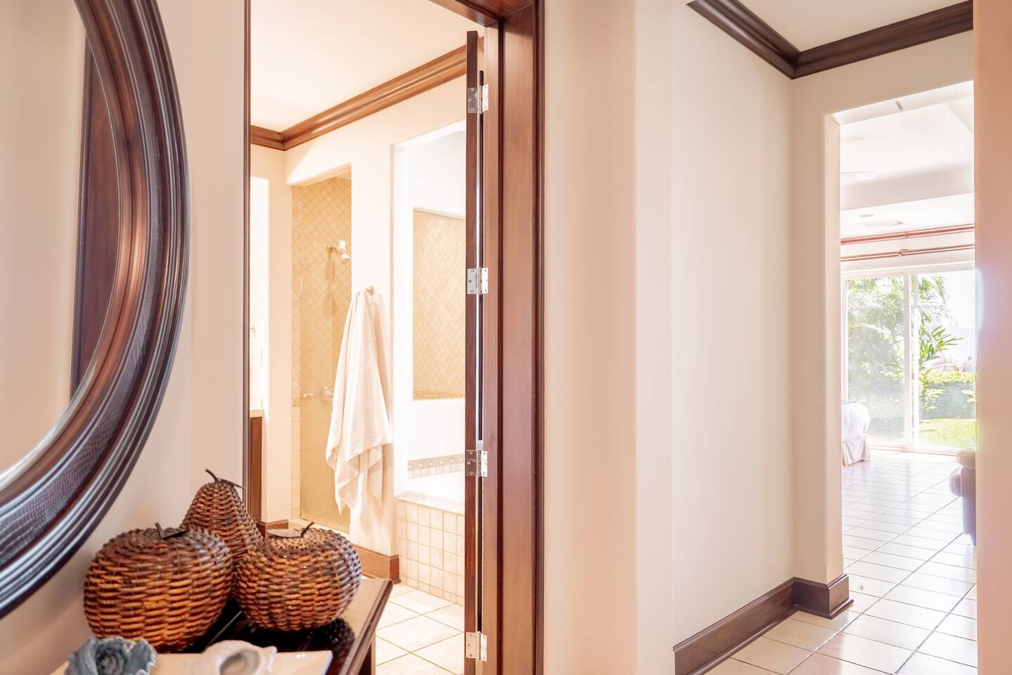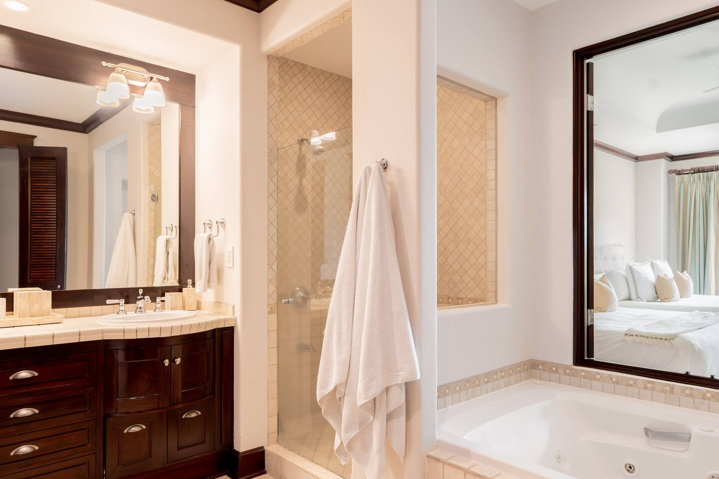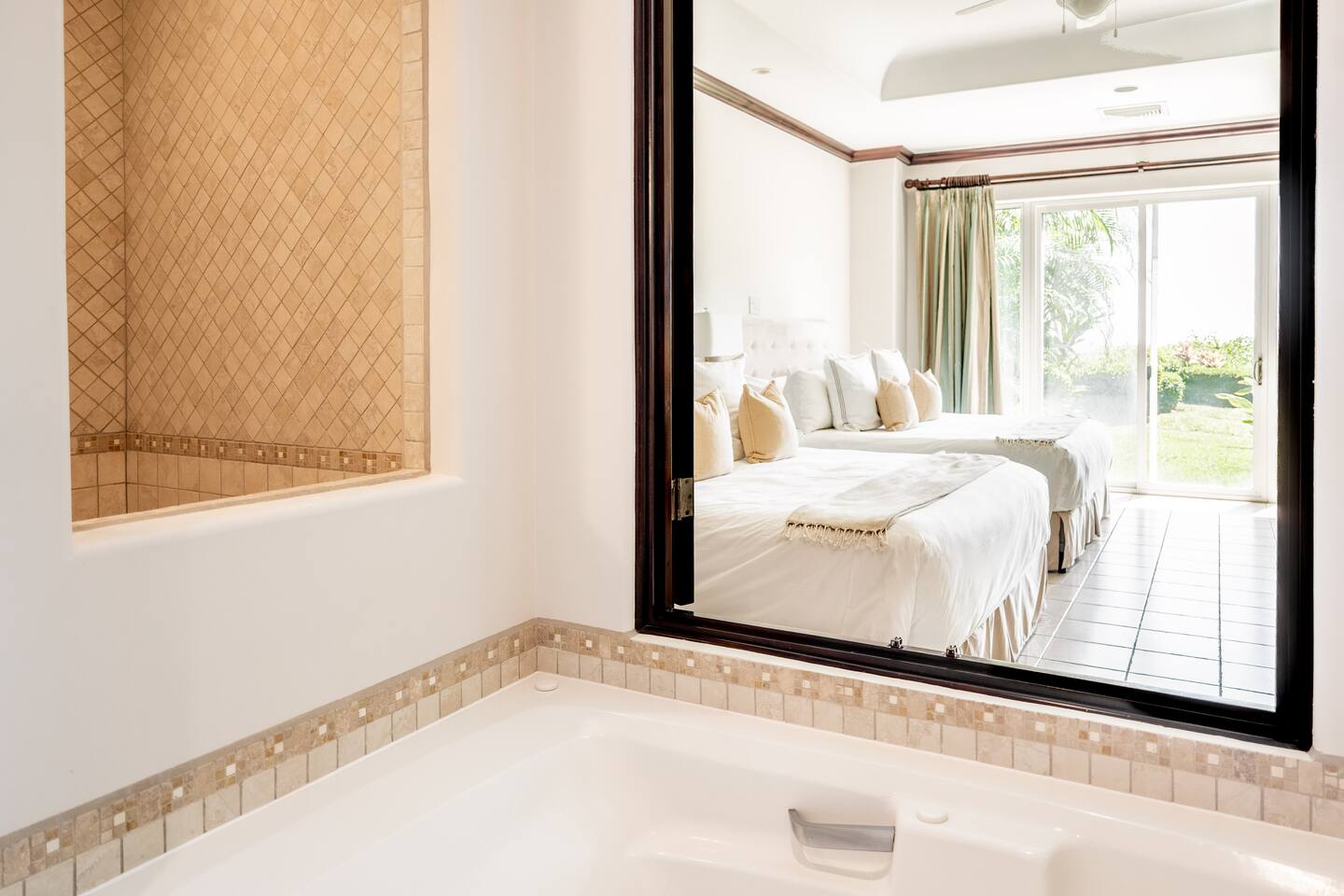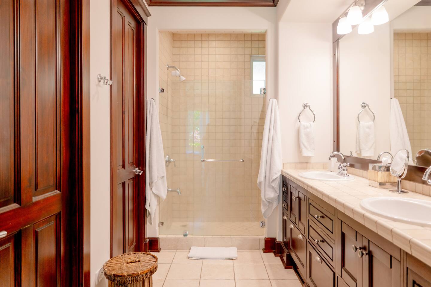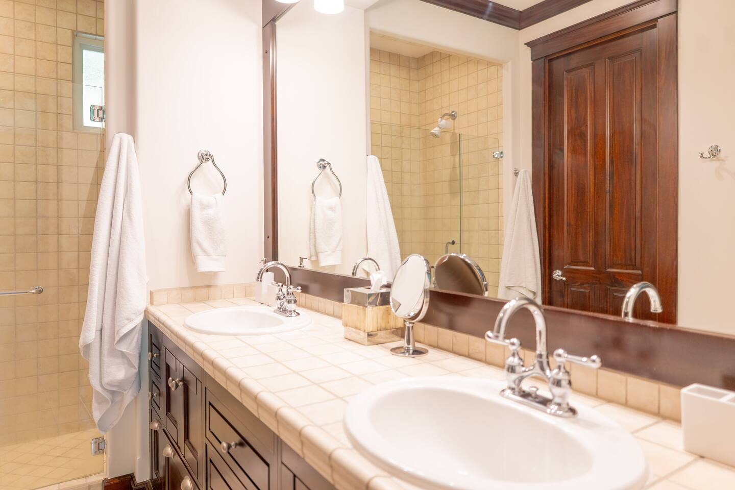 This spacious and bright condo is designed for comfort, privacy, and group living, accommodating up to 12 guests: - Bedroom 1: 2 King beds + full en-suite bathroom - Bedroom 2: 2 Queen beds + full en-suite bathroom - Bedroom 3: 2 Full beds + full bathroom - Maximum capacity: 12 guests - Bathrooms: 3 full bathrooms Key Features: - Spacious, bright, and ideal for families or groups - Private garden with private pool - Access to a shared pool as well - Ocean view and forest view Common Areas: - Comfortable living room with TV - Fully equipped kitchen - Indoor dining area - Outdoor terrace and garden space for relaxing