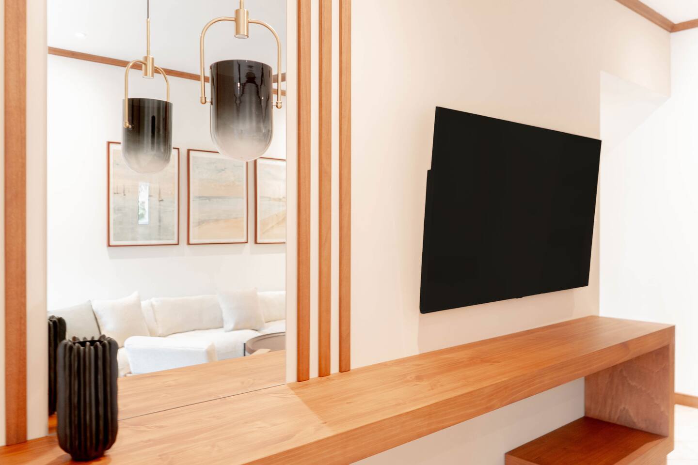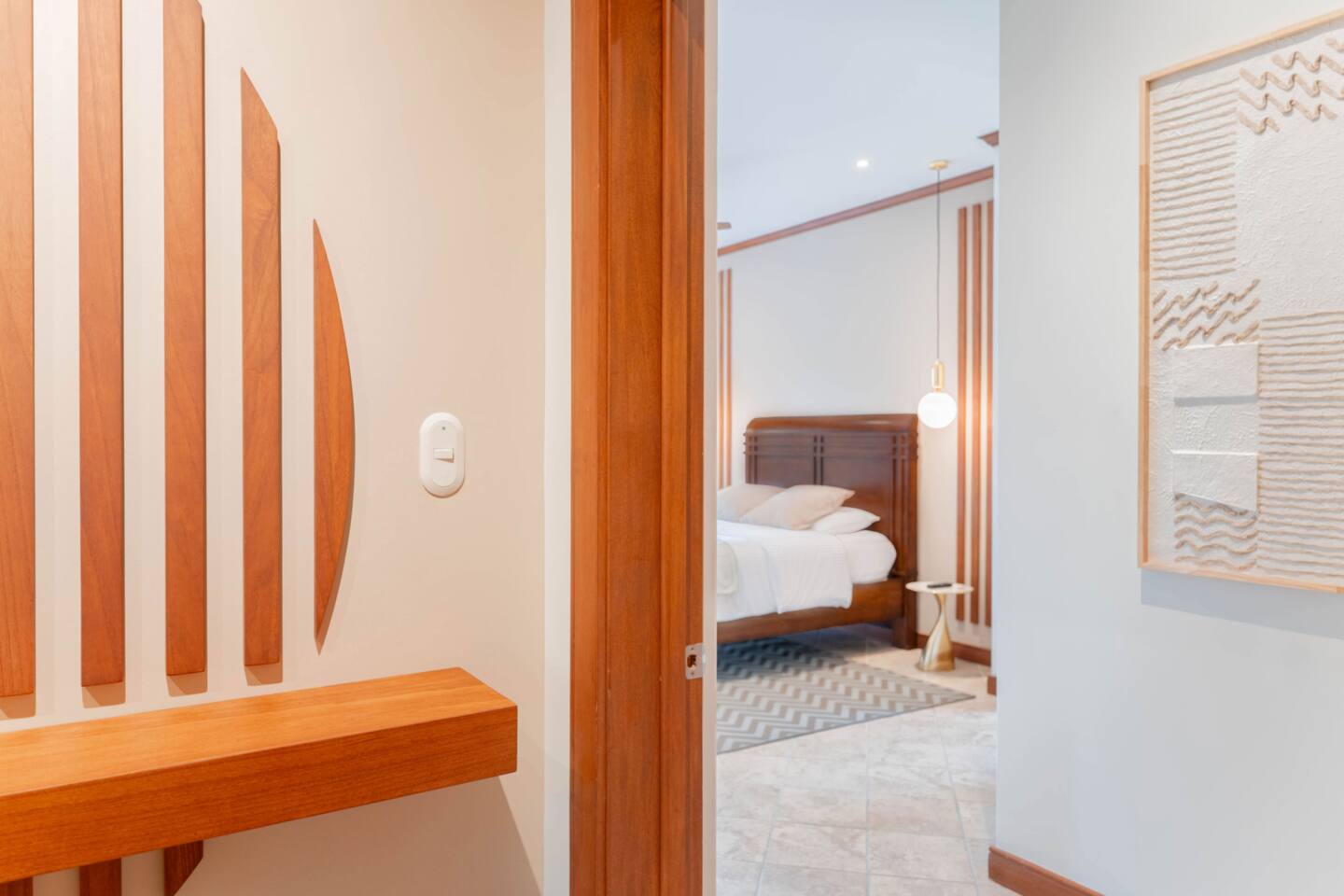 Our spacious apartment boasts a modern design filled with natural light and offers the following amenities: - 3 bedrooms, each with full bathrooms (main room and 2nd room with private terraces) - Main terrace with ultra-comfy custom-designed furniture - Fully equipped kitchen with brand-new appliances - Beautiful wooden panel decorations for a spa-like design in bathrooms - Quiet and private setting on the second floor, away from noise - Capacity for 6 people, fully comfortable
